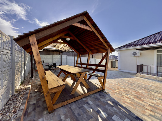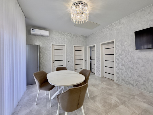 Арт. 93979873 Продается новый дом с дизайнерским ремонтом!с.Мирное, ул. Уютная Кадастровый номер 90:12:090501:16016Кадастровый номер участка 90:12:090501:4906Дом стоит на высоком фундаменте.В доме просторная кухня-гостиная с выходом на задний двор, две спальни, гардеробная, сан.узел, прихожая.По всему дому теплые полы. Высокие потолки.Дизайнерский ремонт, вся мебель и техника остается. Можно заехать и жить.Стоит двухконтурный газовый котел, центральный водопровод, свет 3 фазы, канализация септик на 5 кубов.Оборудованная зона барбекю, хоз. постройки.Двор выложен тротуарной плиткой, автополив газона, система видеонаблюдения, электрические ворота, навес.Данная цена за наличный расчет.Документы РФ!Звоните и приобретайте!