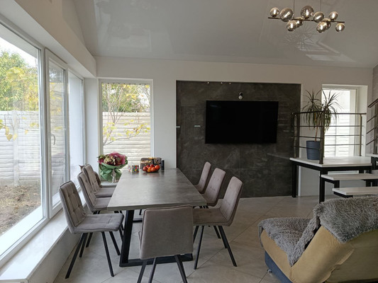 Арт. 120561616 Уютный дом в близи города, с эксклюзивным дизайном !Республика Крым, Симферопольский р-н, Перовское сельское поселение,СНТ "Колос", дачный массив Новозбурьевка, ул. " Центральная". уч 295.Дом новой пoстpoйки 2018 г. расположенный в начале дачного массива!Общая площадь дома 164,4 кв. м.Жилая 115 кв. м.Комнаты 14.5 кв.м. +35,8 кв.м.+ 13,2 кв.м.+17 кв.м. Кухня-гостинная 34,5 кв.м.Санузел совмещенный 17,5 кв. м.Просторный коридор-прихожая 12,1 кв. м.Высота потолков 3 м.Дом выполнен из ракушки с утеплителем.Отопление - тёплый пол (водяной) + батареи.Большие панорамные окна. В гостиной выполнен дизайнерский потолок 5 метров "второго света", что делает пространство современным и уютным. Лестница на второй этож выполнена из современных прочных материалов и дерева!В подсобном помещении расположен накопитель воды, установлен итальянский электрокотел, бойлер косвенного нагрева,а так же генератор электричества.На улице откатные двусторонние ворота с автоматикой и шумоизоляцией.Коммуникации центральные:Городской водопроводсвет, канализация септик.Автономное электрическое отопление!Установлены приборы учете: свет, газ.Земельный участок 5 соток правильной формы.Инфраструктура района:В шаговой доступности остановки общественного транспорта, магазин.Удобный и быстрый выезд на трассу.До города Симферополя - 7 минут на автомобиле. До моря - пгт Николаевка - 20 минут.Право собственности РФ.Один собственник.